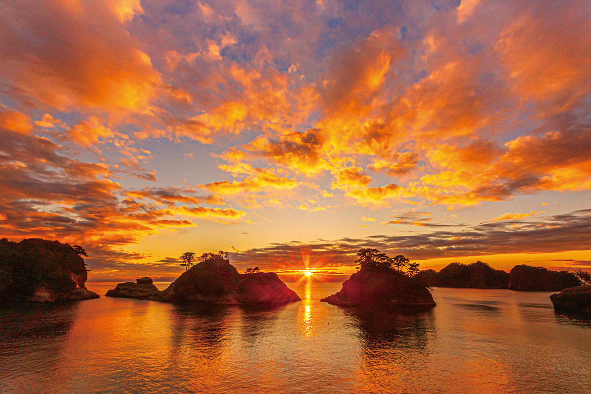 西伊豆町は駿河湾を望む豊かな自然に恵まれたまちです。夕陽の美しさは日本屈指で「日本の夕陽百選」にも選ばれており、黄金色の夕陽に染められた景観は訪れる人々を魅了します。町内には源泉かけ流しの温泉が点在し、新鮮な魚介類や干物、わさびなど、海の幸・山の幸に恵まれた食文化も魅力。四季折々の味覚と温かな人情が息づく西伊豆町で、心も体も満たされるひとときをお過ごしください。