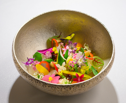 「大切なのは、自分が〝今日食べたい〞と思う料理を作ること。同じ食材でも日によって熟成の具合が違うので、火入れや香り、ソースも変えます。天候や気温に合わせて、コンソメをクリーミーにしたり、温かい料理をあえて冷たく仕上げたり、一人でやっているからこそできる柔軟な対応で、組織では表現が難しい仕事を目指しています」