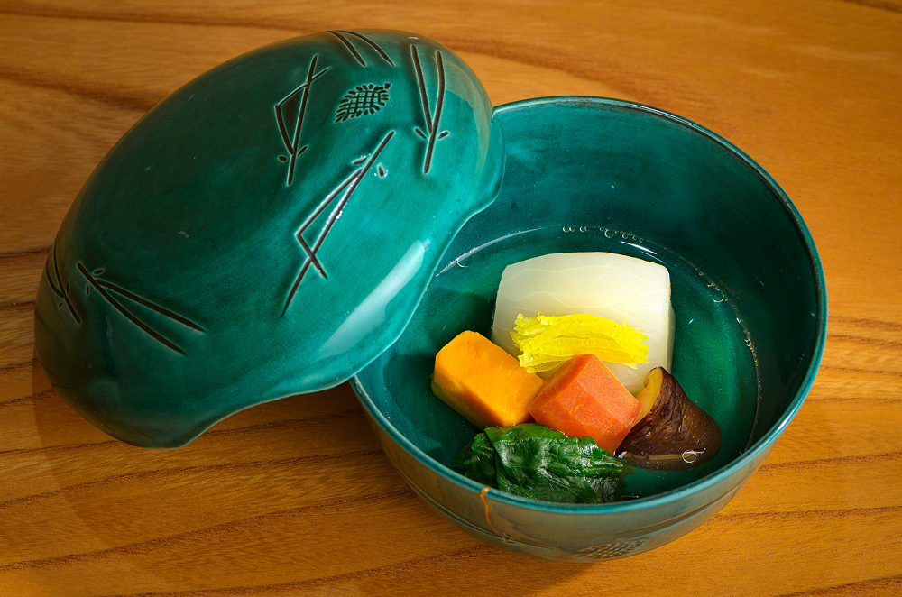 「日本料理は〝椀刺〞と言われるほど、お椀と造りが大切です。最初の3品で季節感や自分の料理をきちんとお見せし、あとは自由に楽しんでいただきたい。そのバランスを考えました」