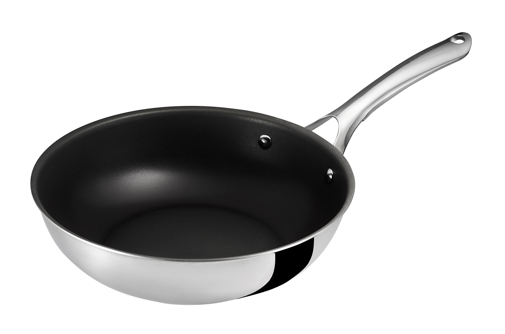 アメリカのキッチンブランド「CORELLE」から、28㎝の新サイズ「ウォックパン」が発売。最大の魅力はコーティングしてないのにこびりつきにくい点で、独自のナノテクノロジーによりふっ素樹脂コーティングのような効果を実現。さらに全世界共通10年間の内面保証が付いており、安心して使える。深さがあるため高温であおっても具材が飛び跳ねにくく炒め物に最適。金属ツール※でも傷みにくい耐久性を備え、料理好きに寄り添う一品だ。